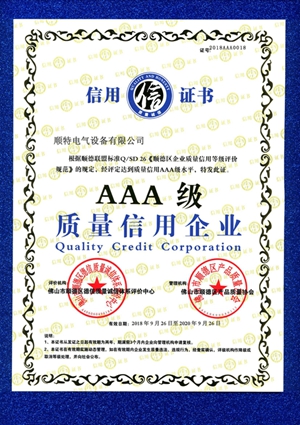 2018年9月26日,佛山市顺德区质量诚信体系评价中心组织专家组一行5人对我司进行了质量信用等级复评,我司顺利通过评审,获得“质量信用AAA级企业”称号。