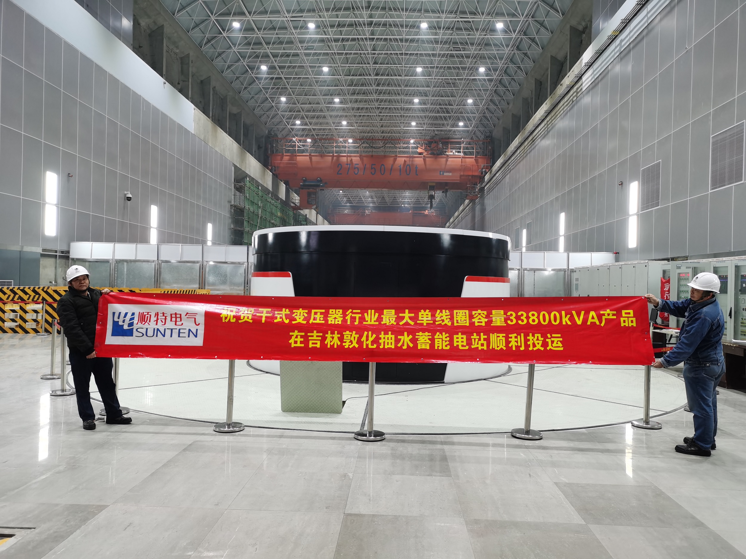 2021年6月,国网新源吉林敦化抽水蓄能电站1号机组投产发电成功,标志着公司圆满完成敦化抽水蓄能电站SFC干式变压器研发制造投运的全过程工作。