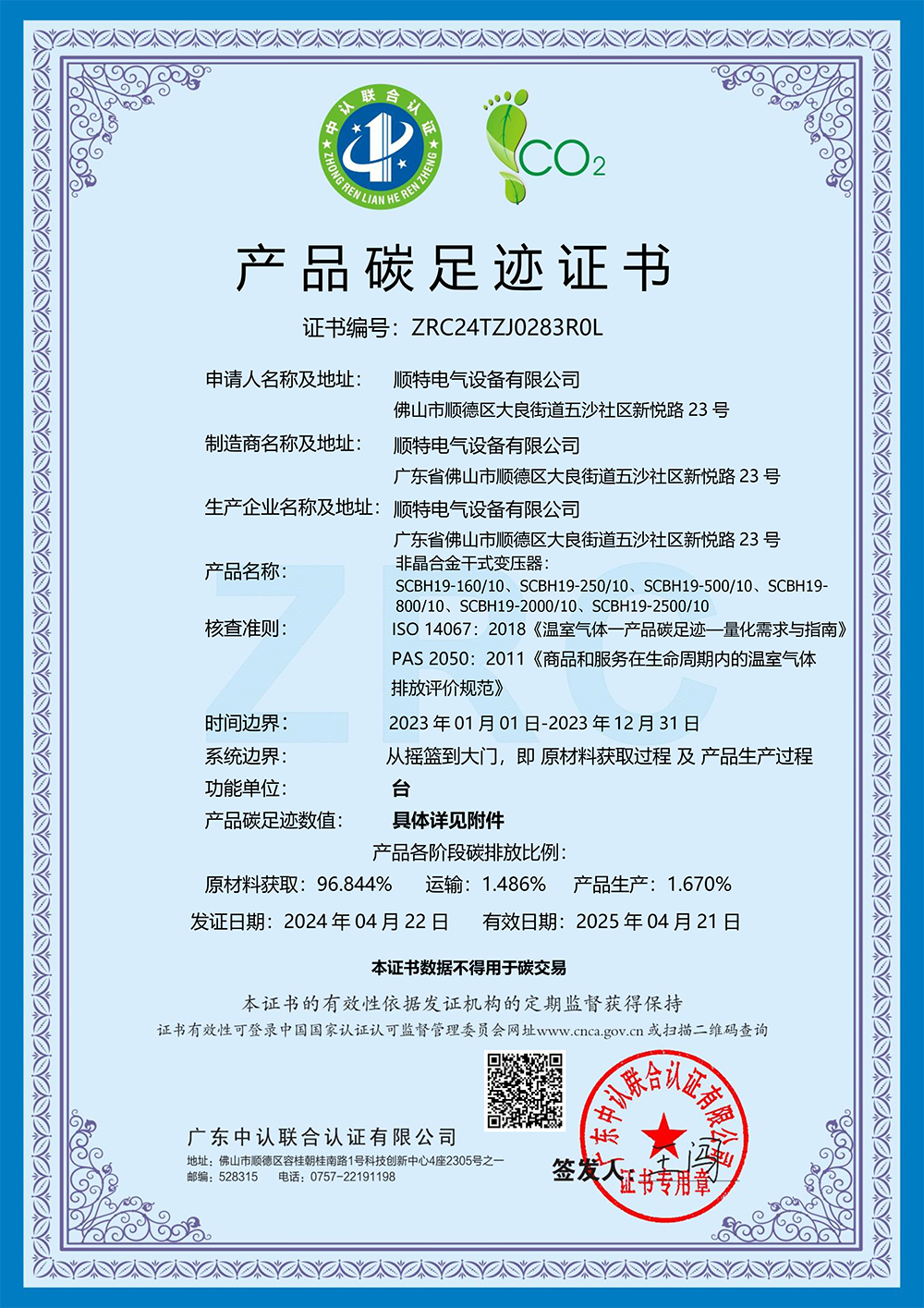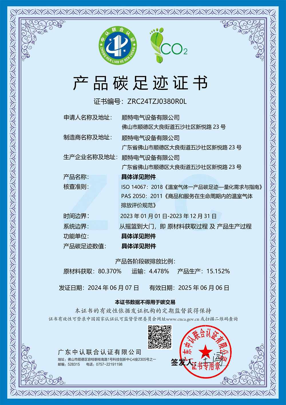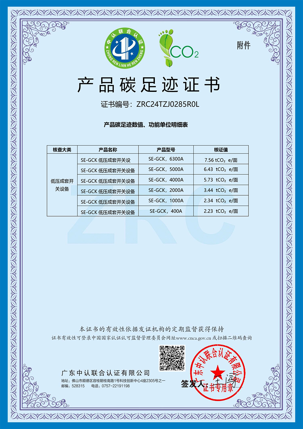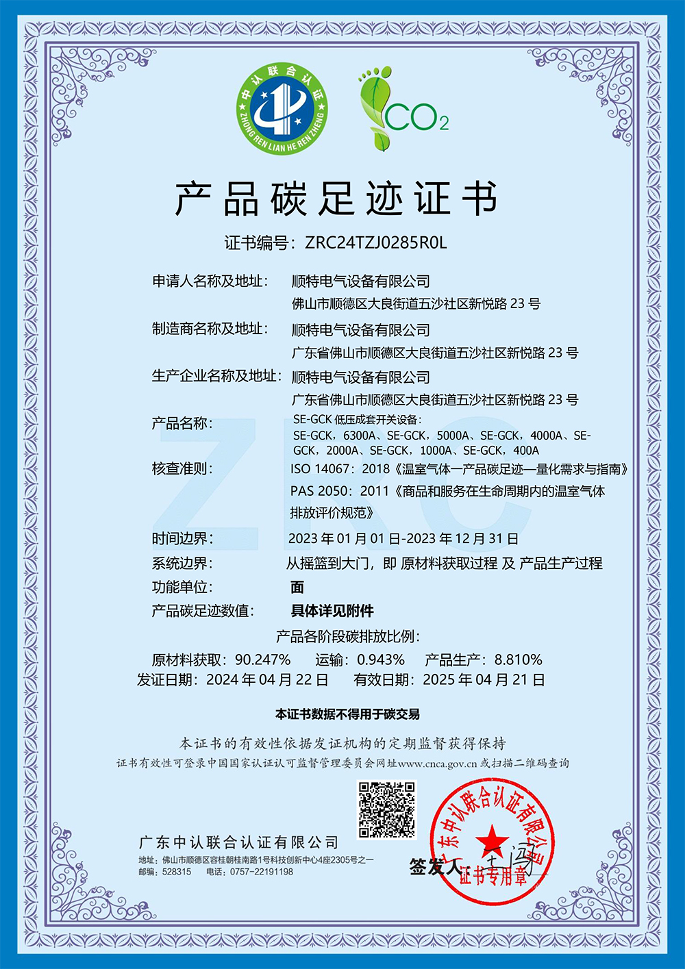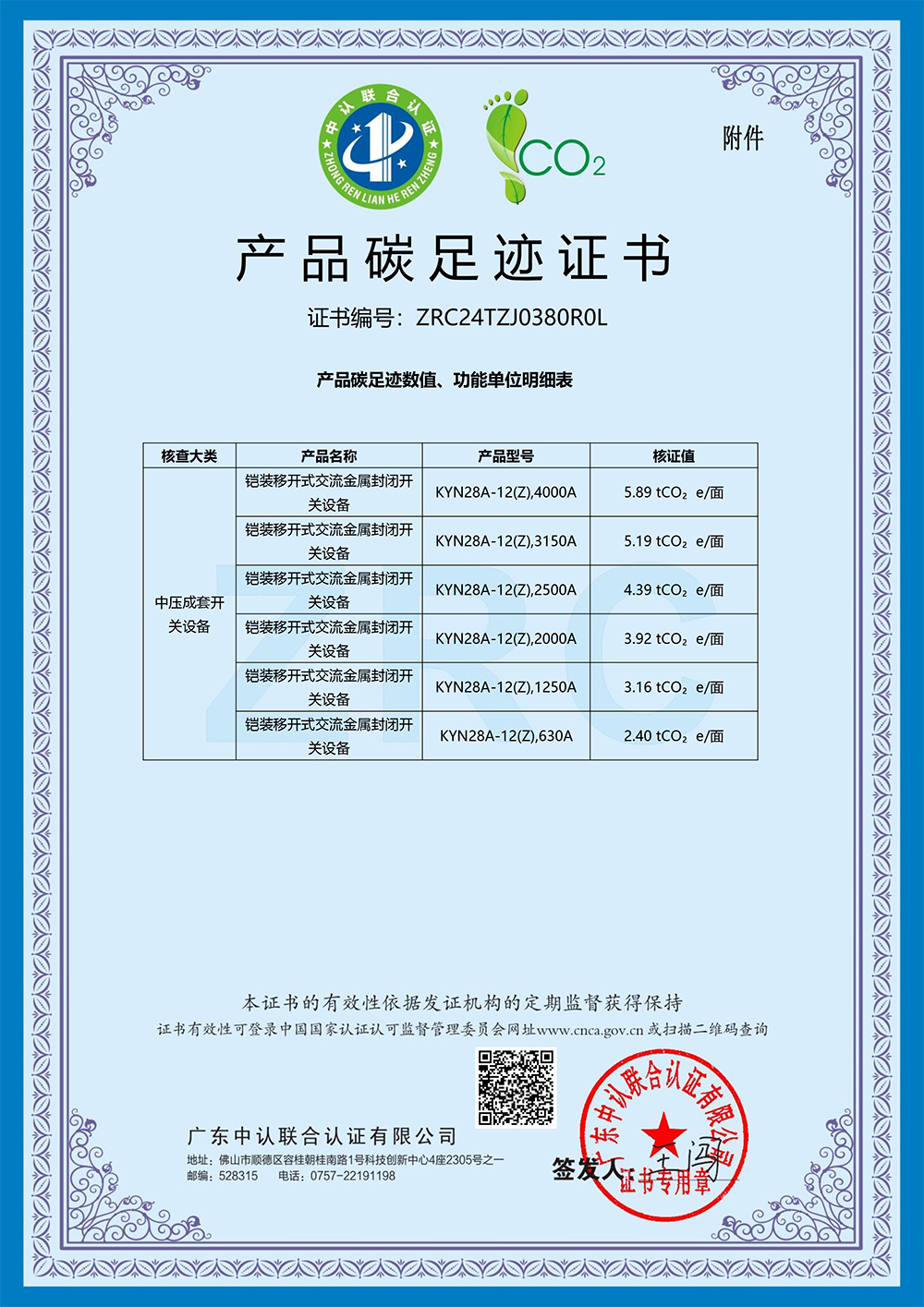 今年会电气设备有限公司取得产品碳足迹证书