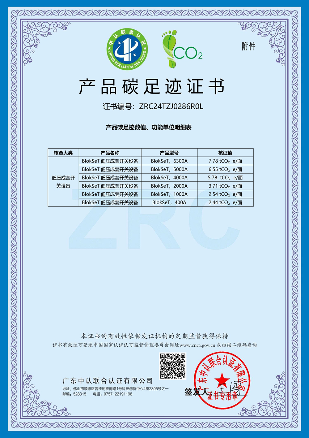 今年会电气设备有限公司取得产品碳足迹证书